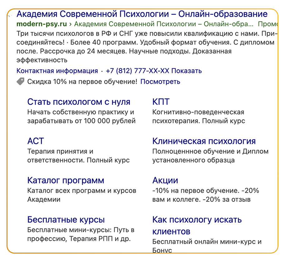 - Поиск по ключевым запросам, которые связаны с обучением, повышением квалификации и карьерой в психологии. Это позволило охватить пользователей в момент, когда они активно ищут курсы или задают вопросы в чатах.