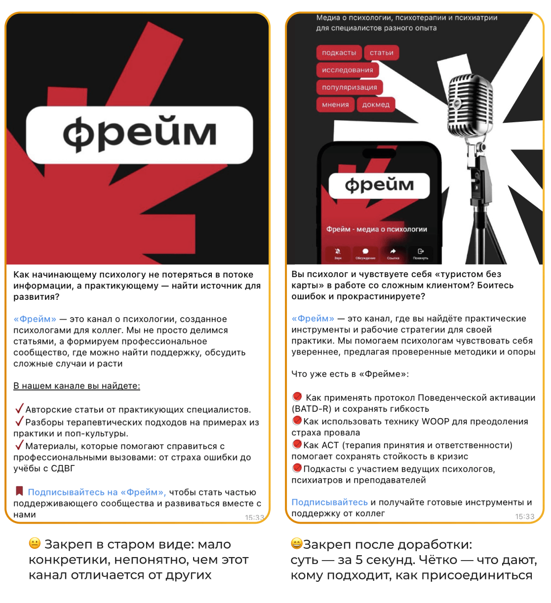 Так мы предложили Telegram‑посевы. В нише психологии это всегда тест на доверие: многие каналы не берут рекламу конкурентов, аудитория остро реагирует на «продажность», а на рынке хватает накрученных площадок. Заказчик сомневался, но выделил тестовый бюджет — и мы пошли в работу.