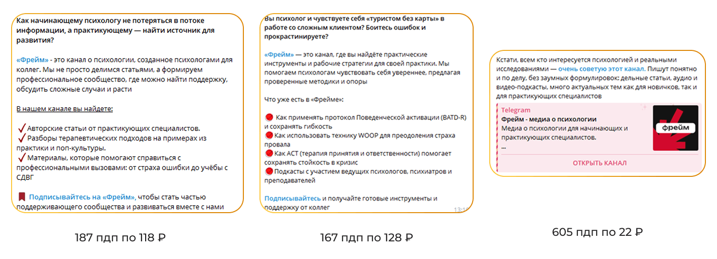 Предложили связку Telegram Ads + посевы. Ads — для масштаба, быстрого тестирования креативов и размещения у конкурентов. Посевы — для нативной рекомендации от авторов каналов и доступа к площадке, где аудитория доверяет личному совету, а не рекламной метке.