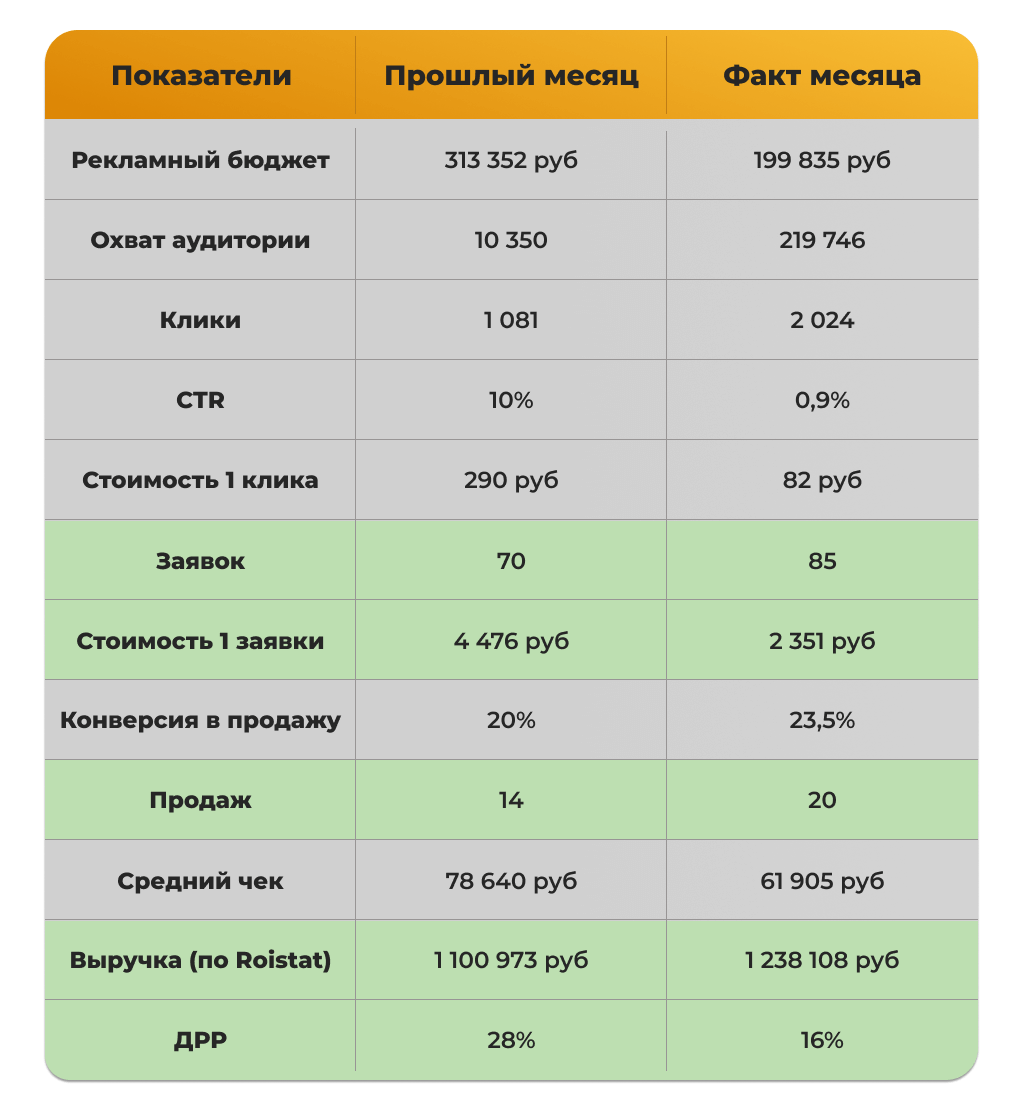 - Результаты тестовых объявлений за последние 3 месяца